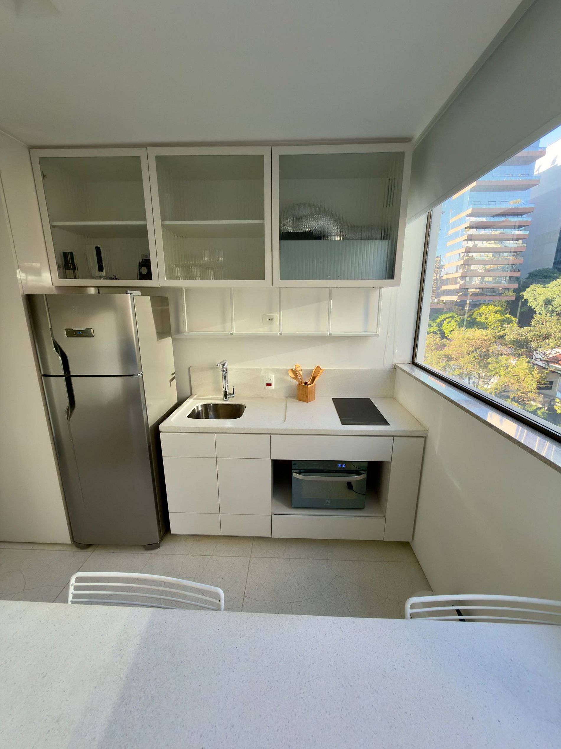 • Piscina Coberta, Academia, Wi-Fi, Smart TV na sala, Ar-condicionado, Cooktop de indução, Forno, Microondas, Máquina de lavar e secar roupas, Sanduicheira, Ferro e tábua de passar;