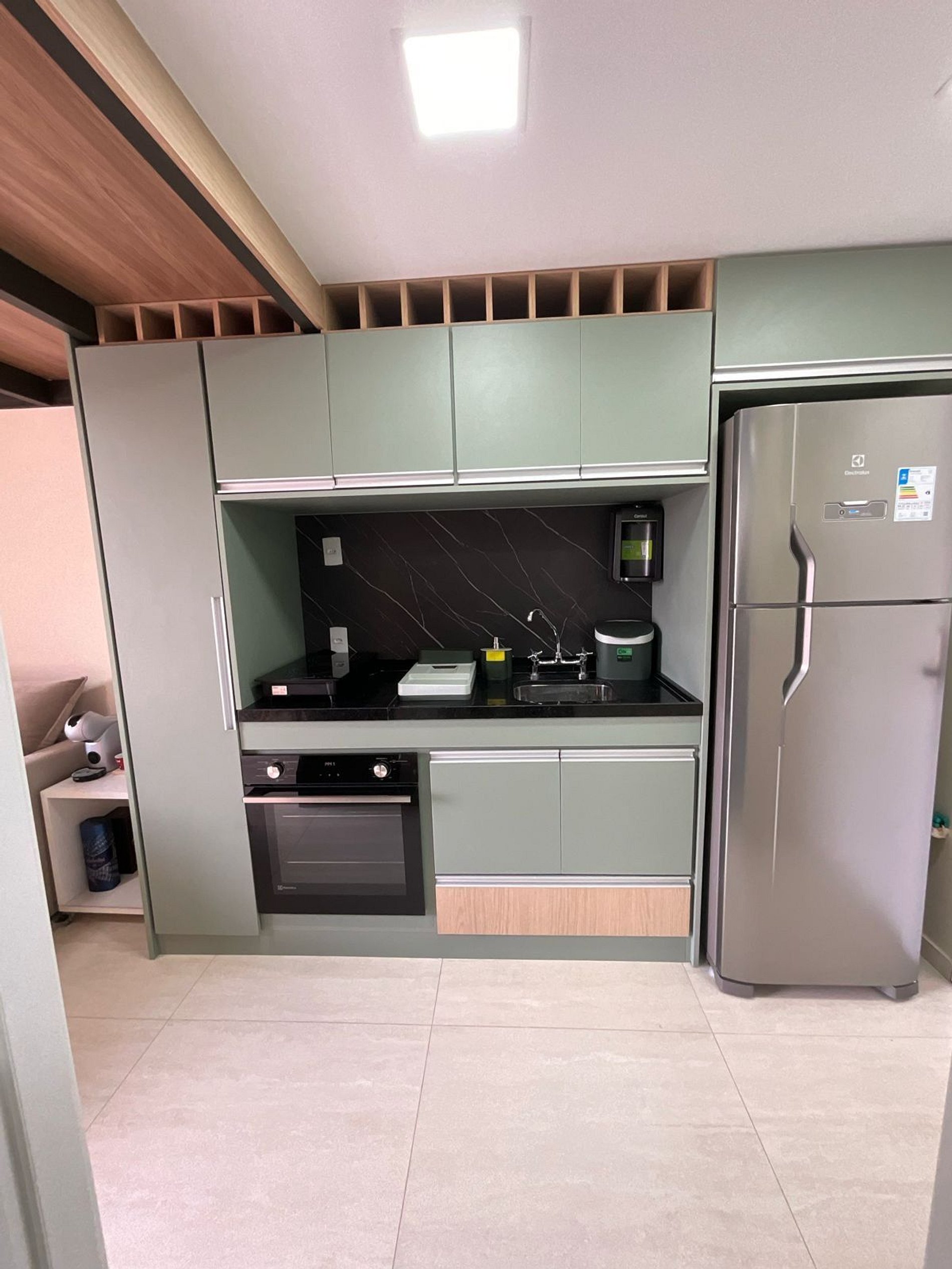 O Studio contém ar-condicionado, armário para roupas, sofá, mesa para trabalho, Smart-TV e WI-FI de alta velocidade, cozinha compacta, cafeteira, cooktop, geladeira, micro-ondas e demais utensílios necessários.