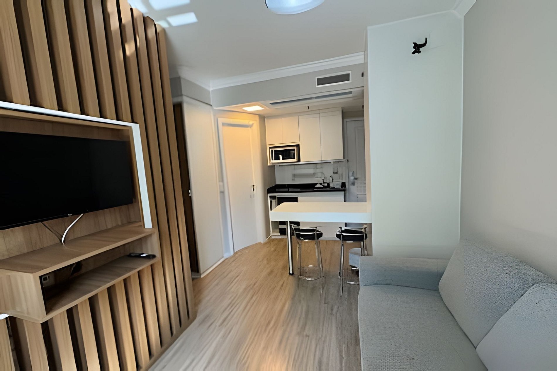 The apartment contains two beds, a couch, a closet, TV, frigobar and the private bathroom. Flat services are included. The flat have a restaurant, gym and pool. It's located 700 meters from Oscar Freire Metro.