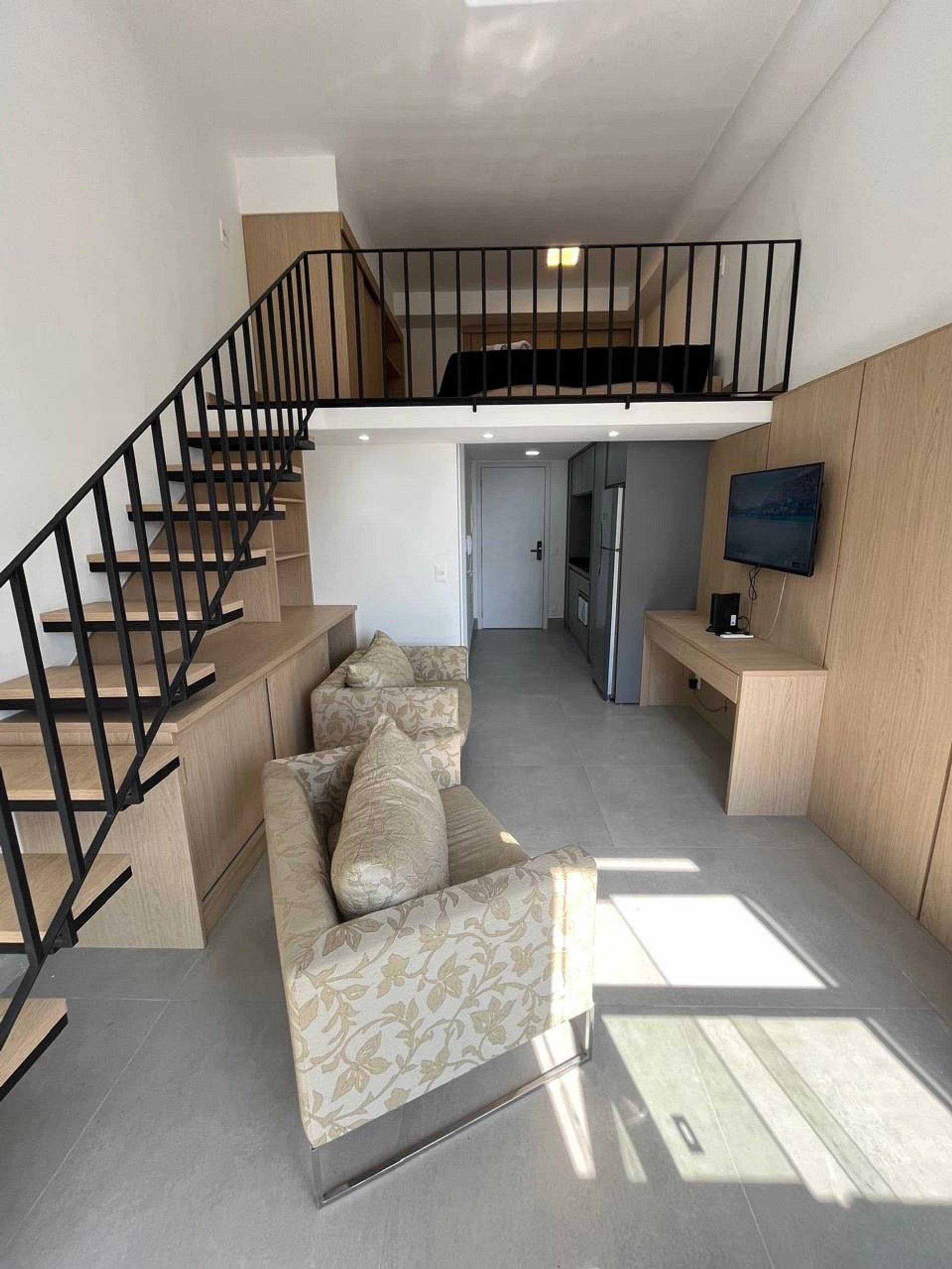 Desfrute de uma estadia confortável neste estúdio novo com pé direito duplo reduzido e vista para o Parque Ibirapuera!