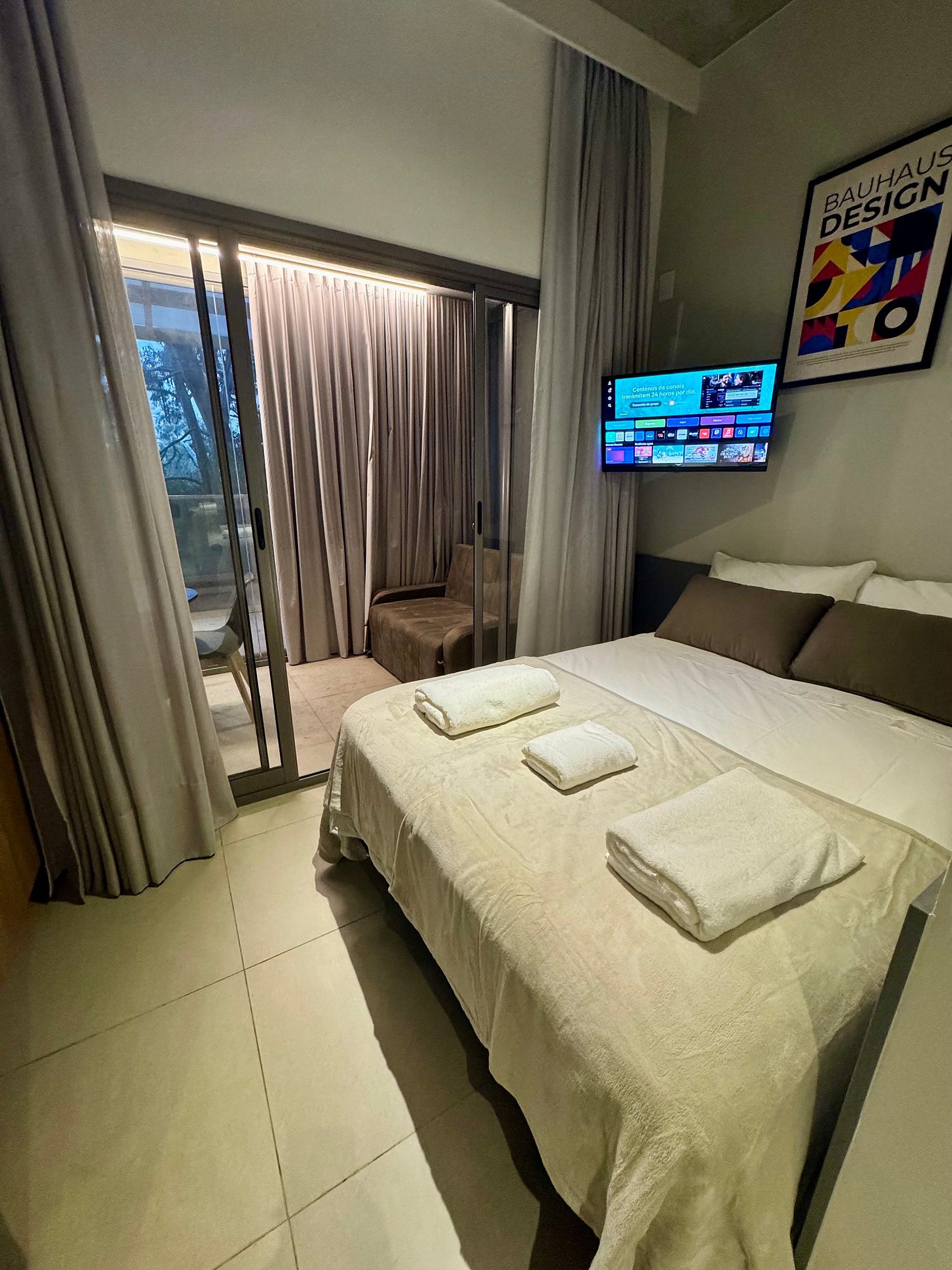 Studio novo e lindo com 25m2 - Edifício ON PAULISTA, decorado, armários planejados, cook-top, geladeira, micro-ondas, televisão, utensílios de cozinha, roupas de cama, mesa e banho, camas de CASAL e SOFÁ CAMA, persianas com blackout, ar condicionado, Internet, excelente localização 500 mts da Av Paulista, em frente ao metro Paraiso.
