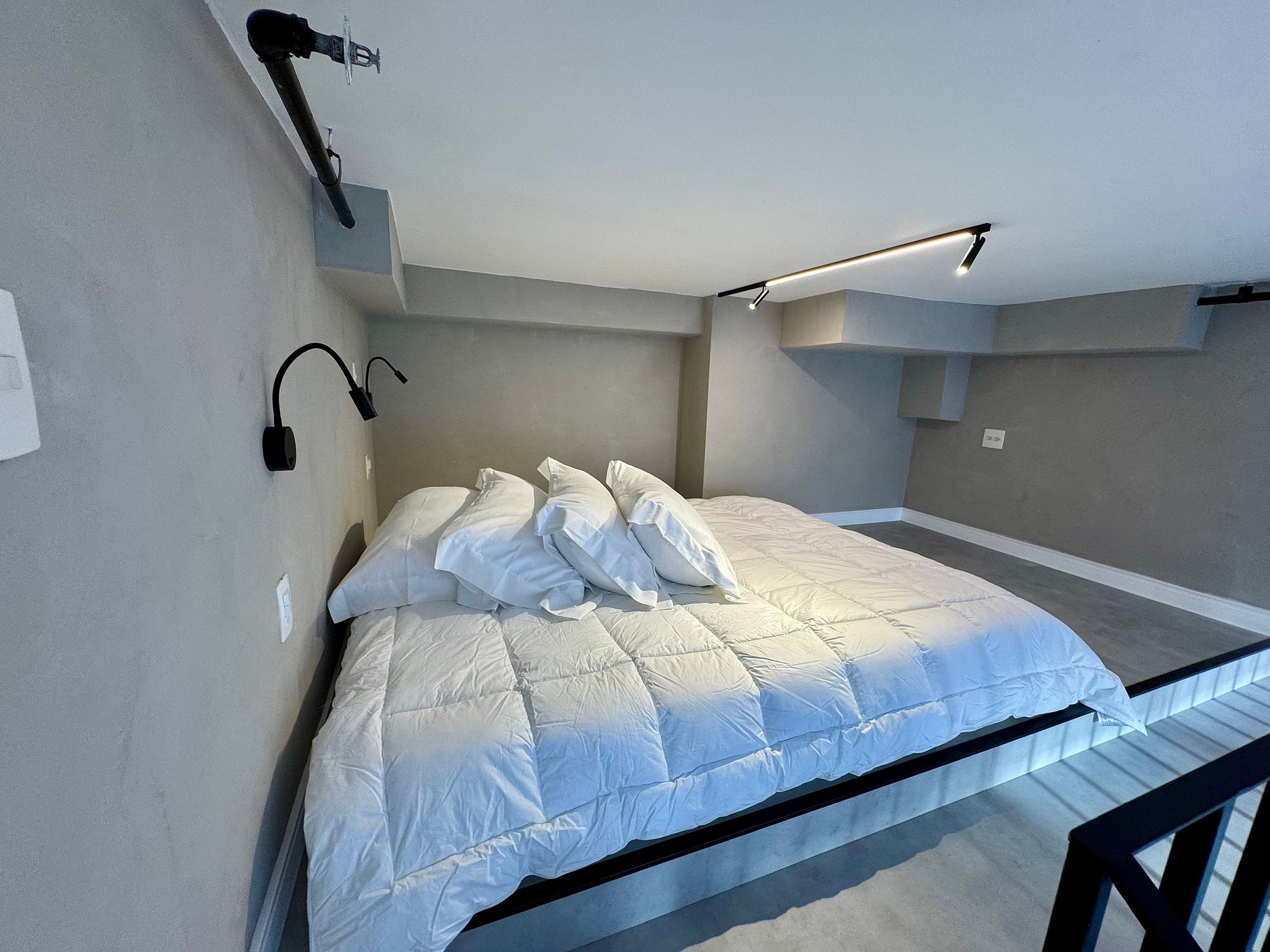 • Descanse com excelência: o Studio possui cama queen de alta qualidade, acompanhada de um colchão premium da marca Simons, que garante noites de sono perfeitas.