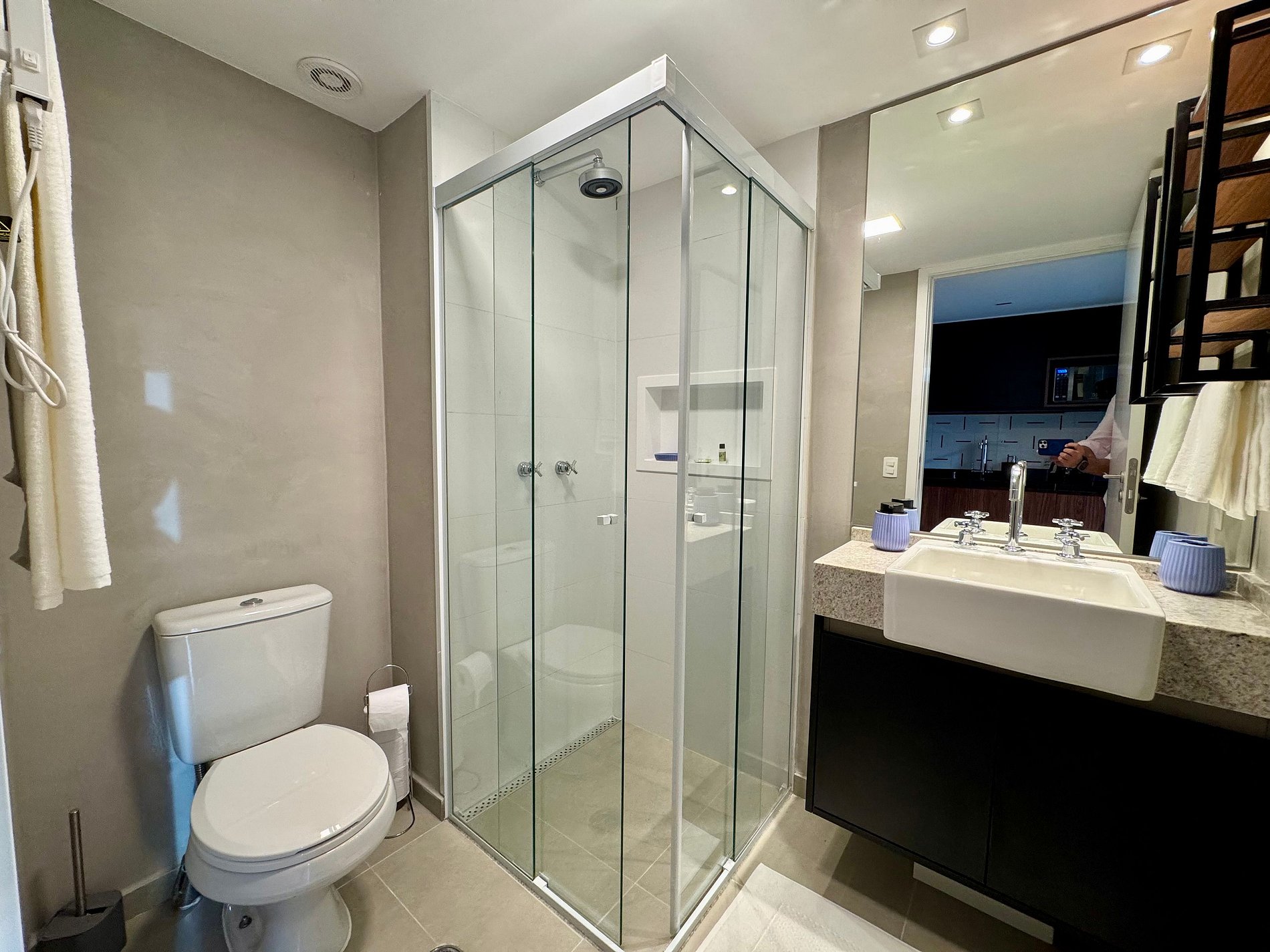 • Destaque para a cortina elétrica blackout, que garante privacidade e um ambiente aconchegante, e o chuveiro Deca Plus, sinônimo de qualidade e conforto nos momentos de banho. Toalheiro elétrico para um melhor conforto pós banho.